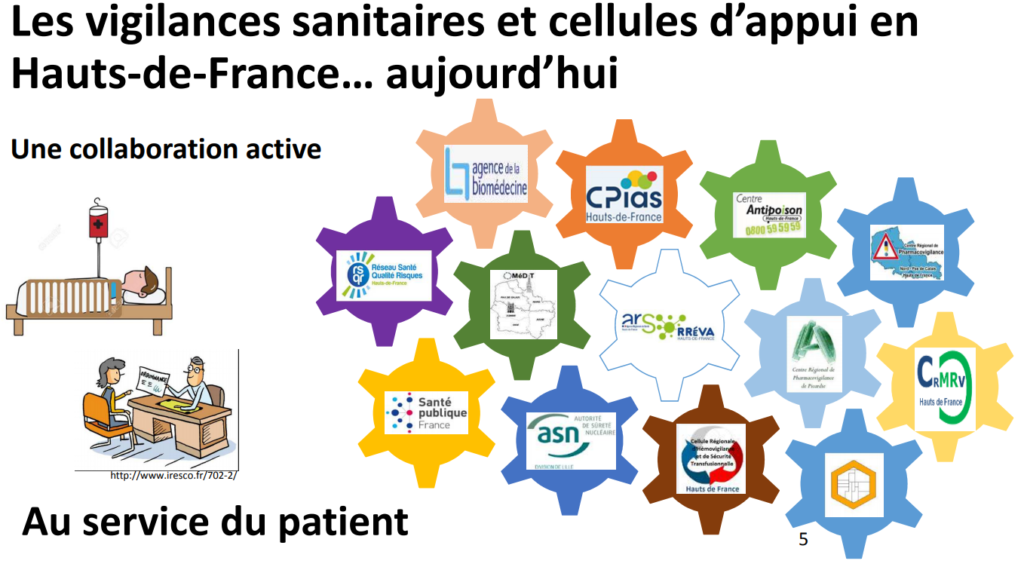 – Les ARS sont responsables, en lien avec l’ANSES, l’ANSP (SPF), l’ABM et l’ANSM, de l’organisation et de la couverture territoriale des vigilances sanitaires