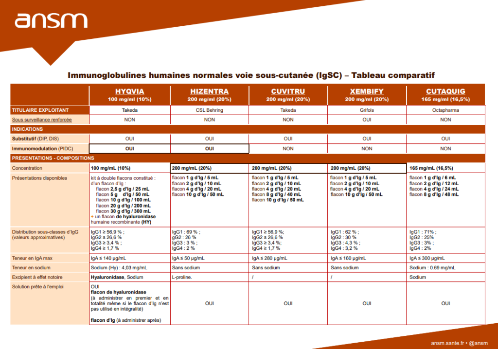 ANSM - Tableau comparatif des IgSC : renforcer la sécurité et éviter les confusions (décembre 2025)